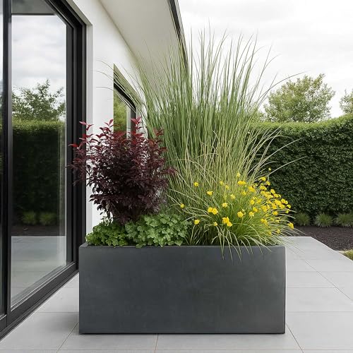 IDEALIST 80cm Plant Pot | Dark Grey Reinforced Stone Large Trough Planter | Rectangular Garden Planters with Drainage Holes L80 W37 H37.5 cm, 79 litres