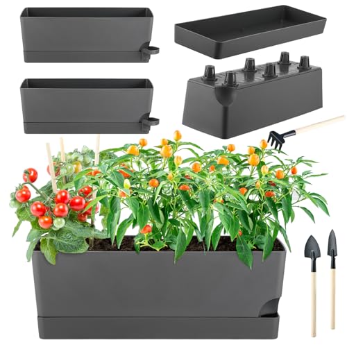 KvyusFlourish Self Watering Rectangular Planters, 4 Pack, 17" Indoor Outdoor Window Boxes, Herb Pots with Drainage Holes, Grey