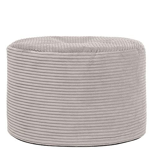icon Milano Cord Bean Bag Pouffe, Grey, Large Pouffe Footstool with Filling Included, Footrest, Bedroom, Living Room, Living Room Furniture