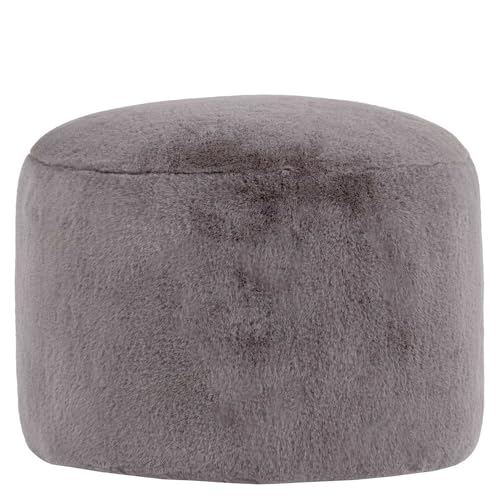 icon Milano Bean Bag Pouffe, Faux Fur Fabric, Light Grey, Large Pouffe Footstool with Filling Included, Footrest, Bedroom, Living Room, Living Room Furniture