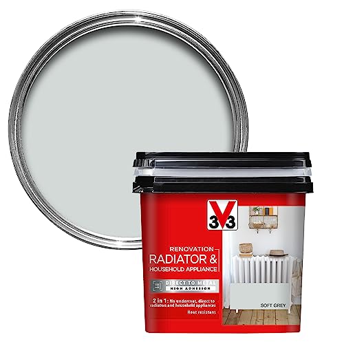 V33 Renovation Radiator & Household Appliance Paint - Direct to Metal & PVC - High Adhesion - Resistance To Temperature Variations - Soft Grey Satin 750ml