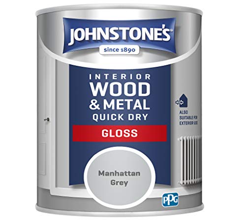 Johnstone's - Wood & Metal Paint - Gloss Finish - Manhattan Grey - 750ml - Water Based - Non Drip & Quick Drying - Radiator Paint - Low Odour - Dry in 1-2 Hours - 8m2 Coverage per Litre