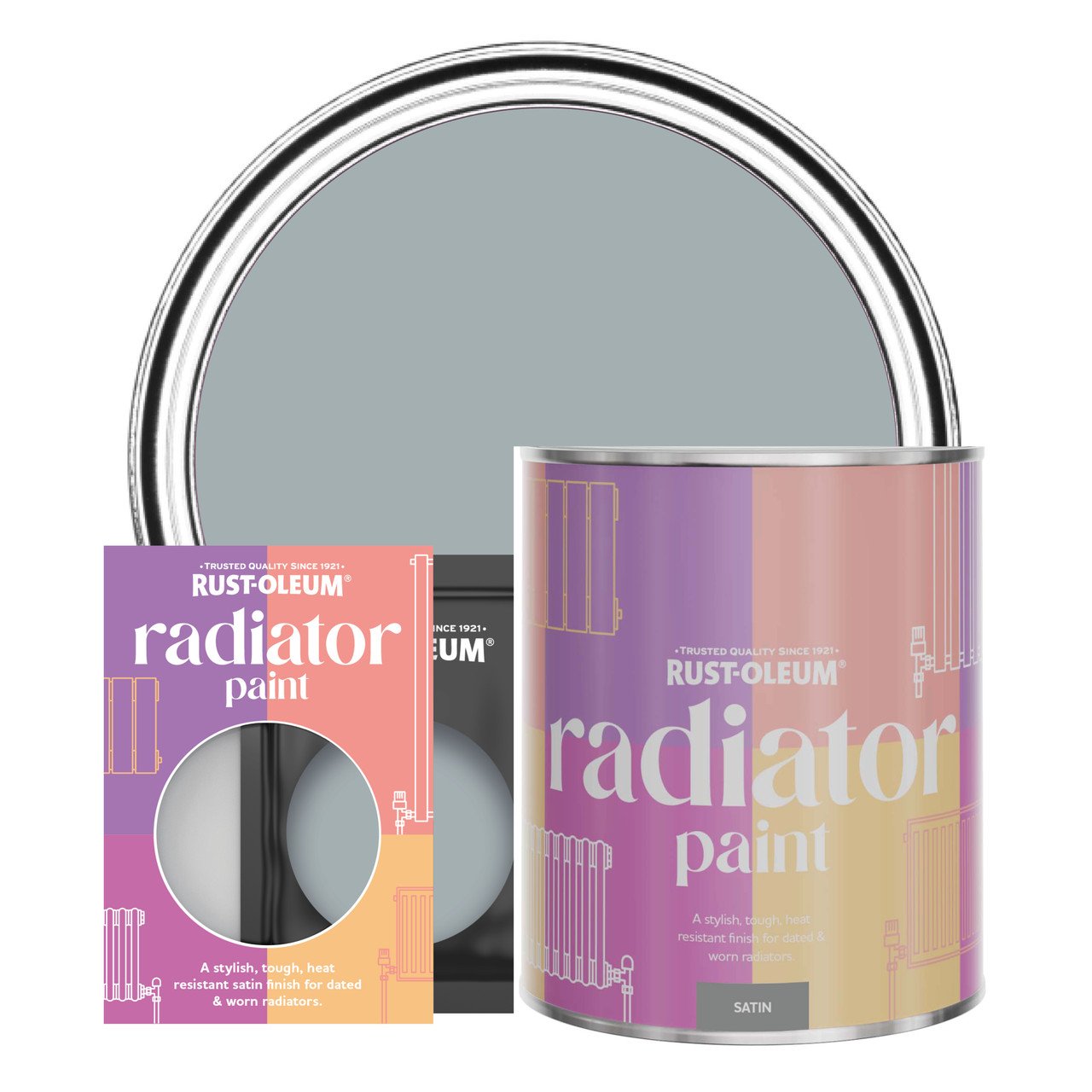Rust-Oleum Grey Heat Resistant Radiator Paint in Satin Finish - Tyne Fog 750ml