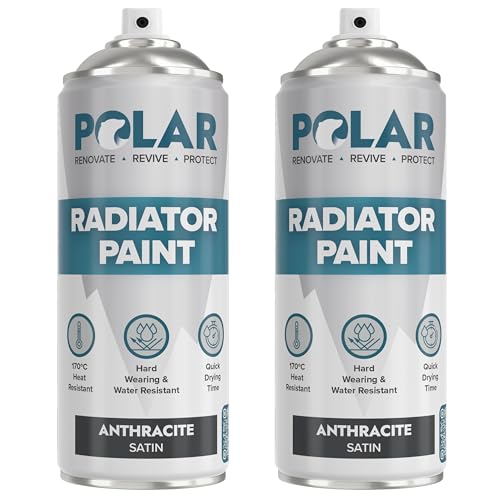 Polar Radiator Spray Paint - 3-in-1 Primer, Under- & Topcoat - Heat Resistant up to 170°C - For Radiators, Hot Pipes & Towel Rails - Satin Finish - Anthracite - 2 x 400ml