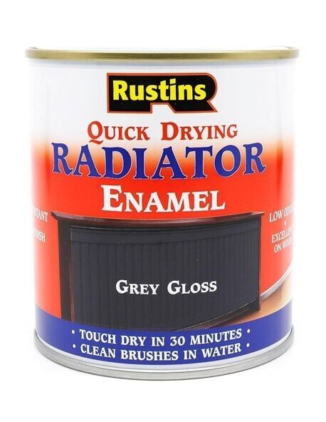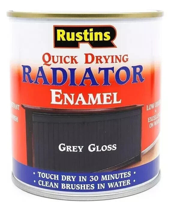 Gloss Grey Radiator Enamel Paint Rustins Quick Drying 500ml Fade Resistant New