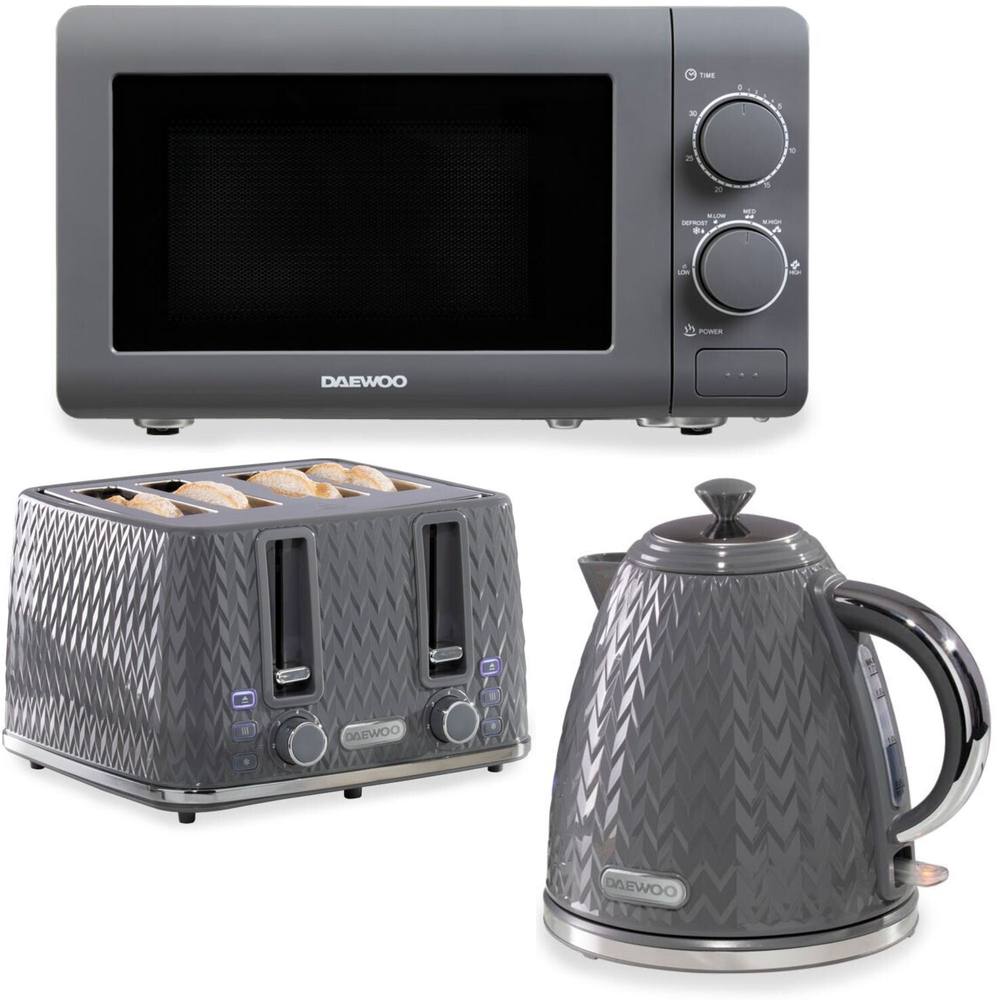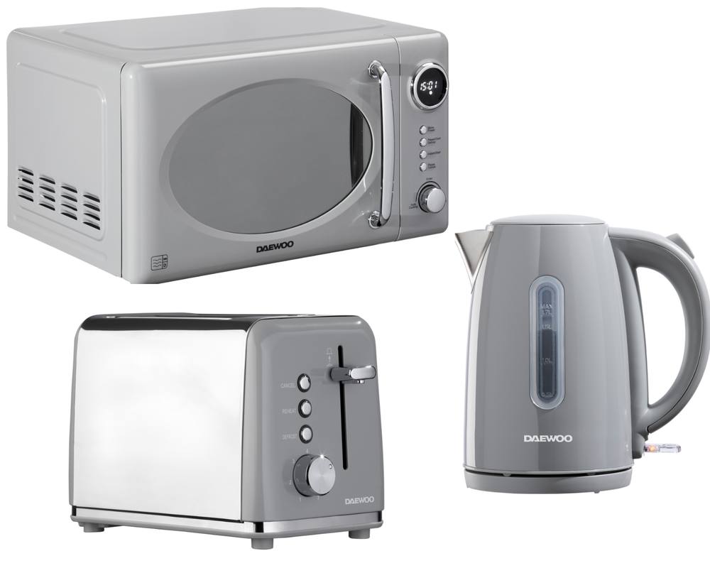 Daewoo Kensington Retro Matching Grey Jug Kettle Toaster Microwave Set 2-Slice