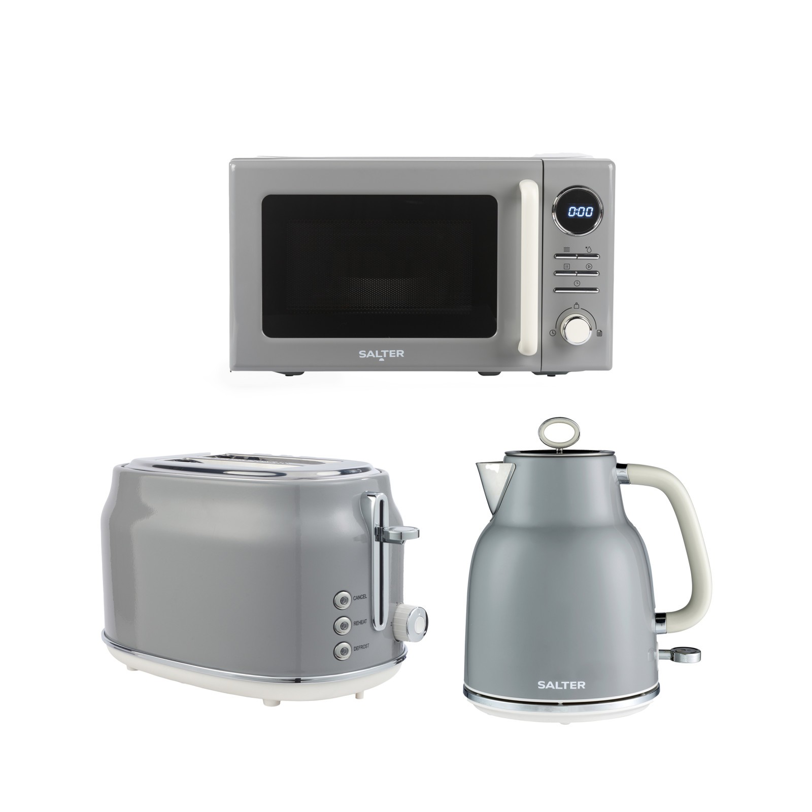 Salter Retro Grey Set: 1.7L rapid boil kettle, 4-slice toaster, 20L microwave
