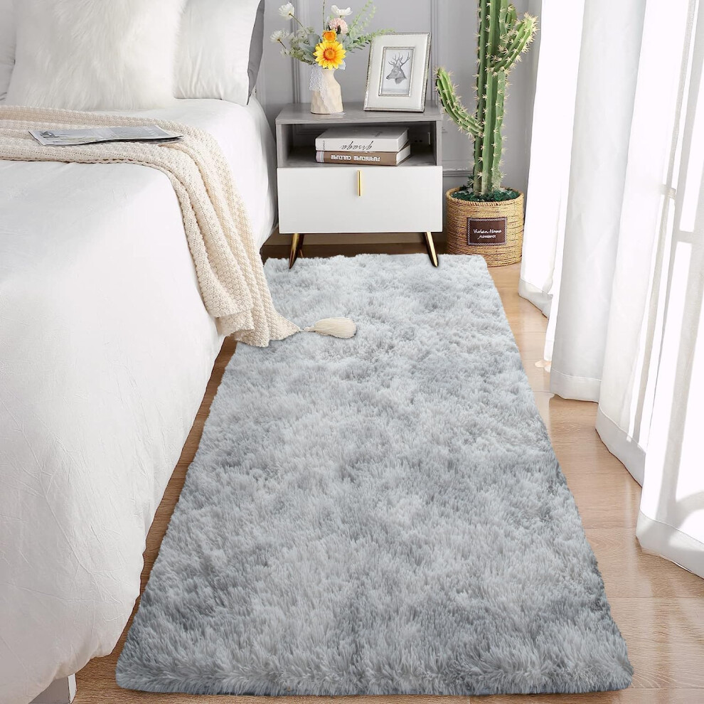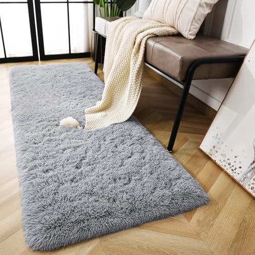 2x6 Grey Runner Rug Ultra Soft Fluffy TieDye NonSlip Pile for Bedroom Kitchen Hallway