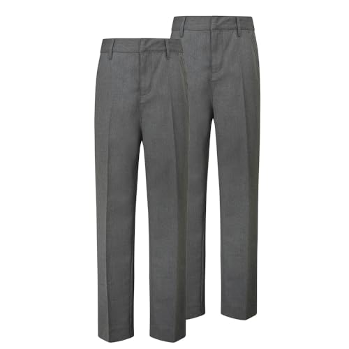 Trutex Basics 2 Pack Grey School Trousers for Boys (3-12 Years), Slim Leg Junior Boys' Smart and Durable Trousers - Genuine Uniform