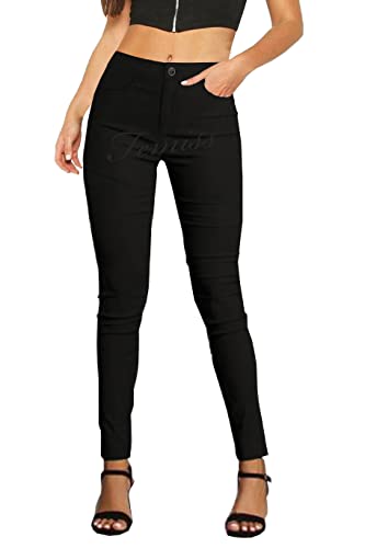 femiss Girls Navy Blue Black Grey School Trousers Women Work Office Skinny Stretch Trousers (10, Black)