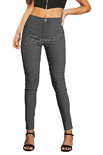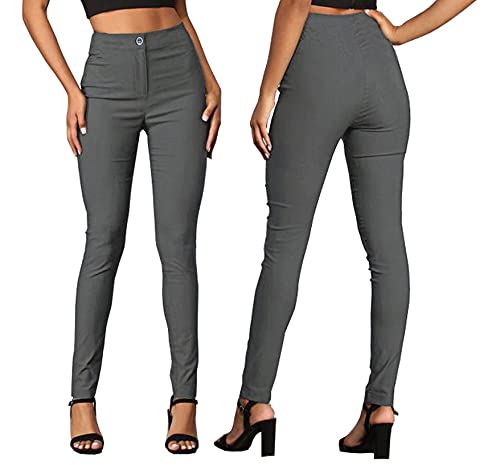 femiss Girls Navy Blue Black Grey School Trousers Women Work Office Skinny Stretch Trousers(8, Grey)