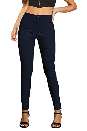 femiss Girls Navy Blue Black Grey School Trousers Women Work Office Skinny Stretch Trousers (8, Navy Blue)