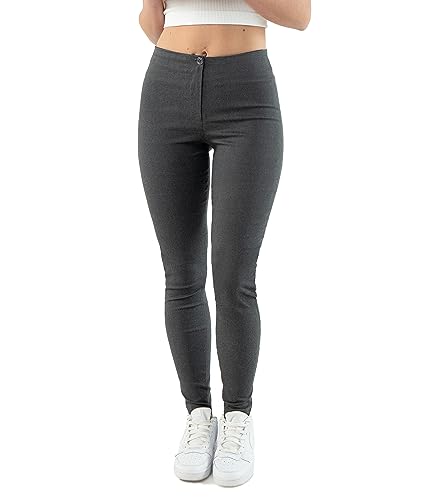 femiss Girls Navy Blue Black Grey School Trousers Women Work Office Skinny Stretch Trousers (10, Grey)