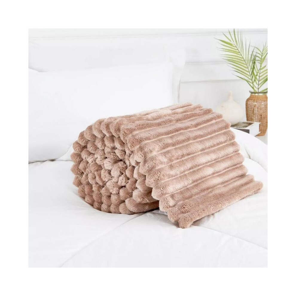 (Mink , King) Chunky Cord Ribbed Throws Soft Large Fluffy Cosy Sofa Bed Settee Blankets