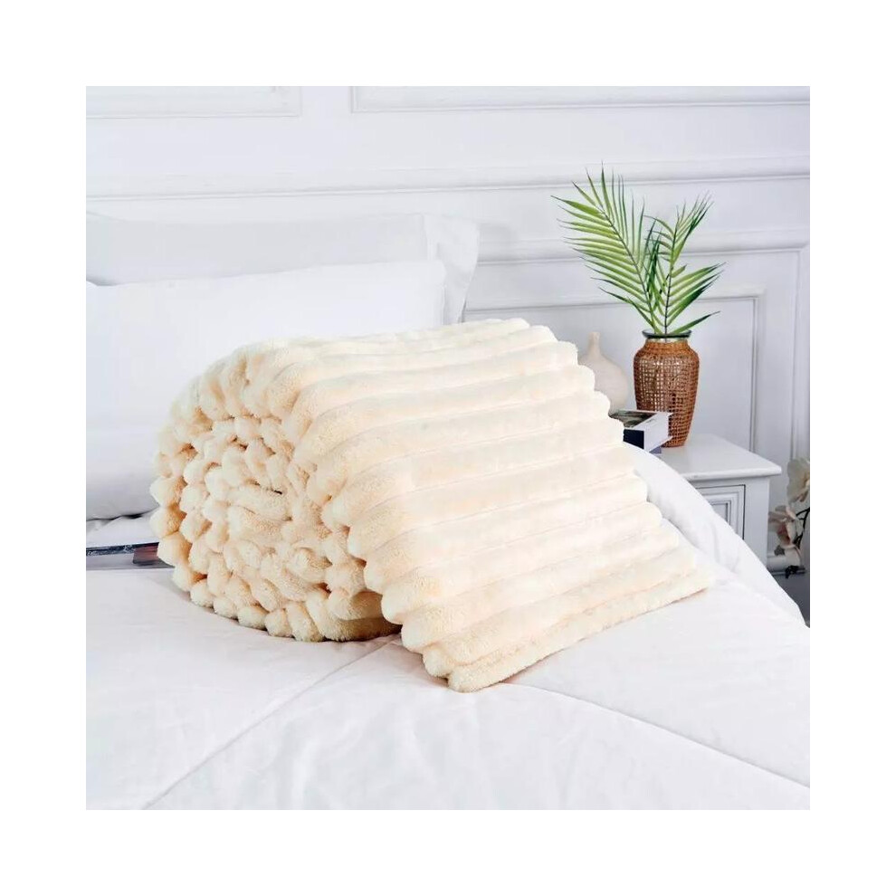 (Cream , Double) Chunky Cord Ribbed Throws Soft Large Fluffy Cosy Sofa Bed Settee Blankets
