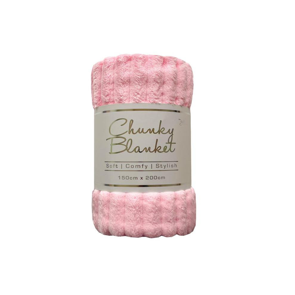 (Pink, King) Chunky Cord Ribbed Throws Soft Large Fluffy Cosy Sofa Bed Settee Blankets