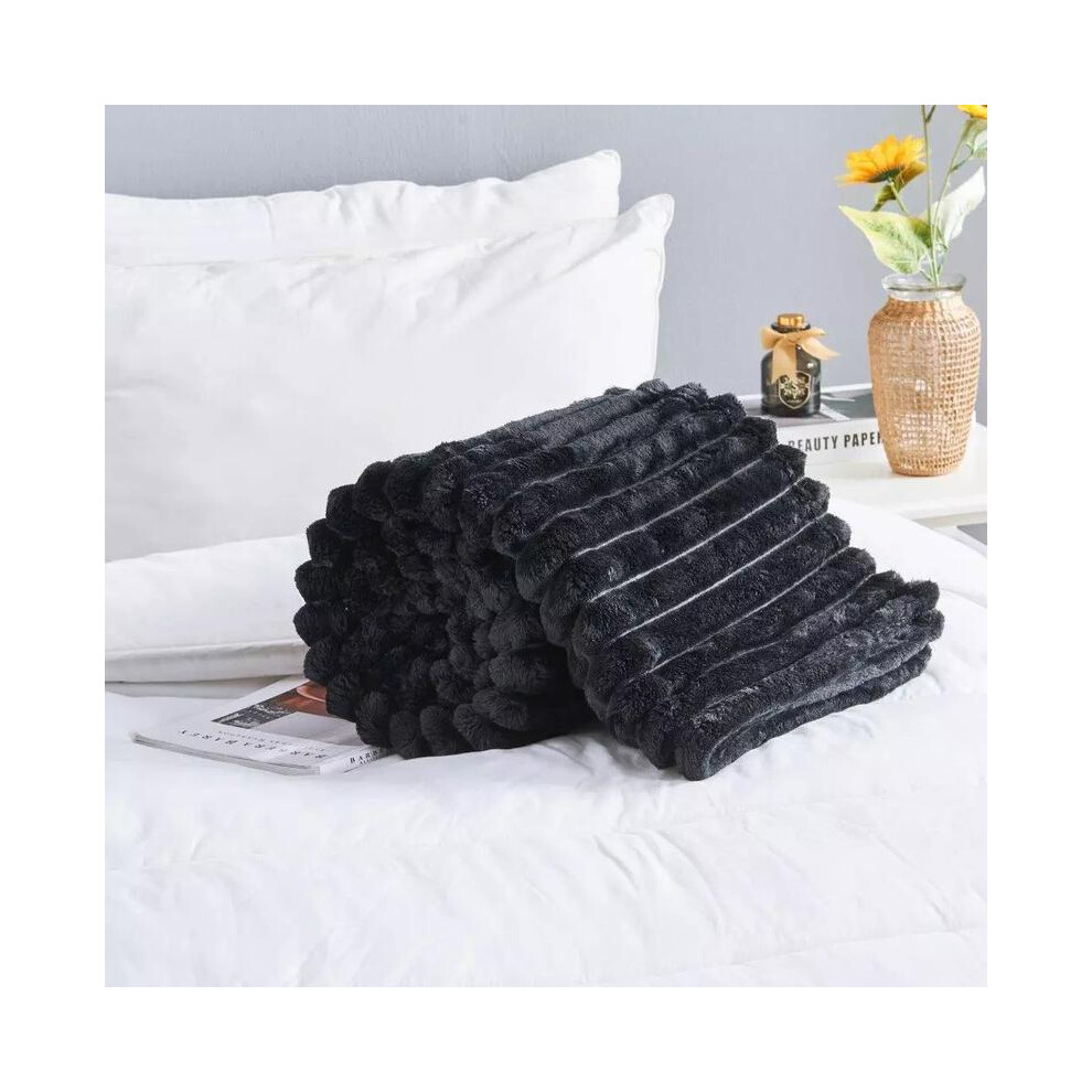 (Black , King) Chunky Cord Ribbed Throws Soft Large Fluffy Cosy Sofa Bed Settee Blankets