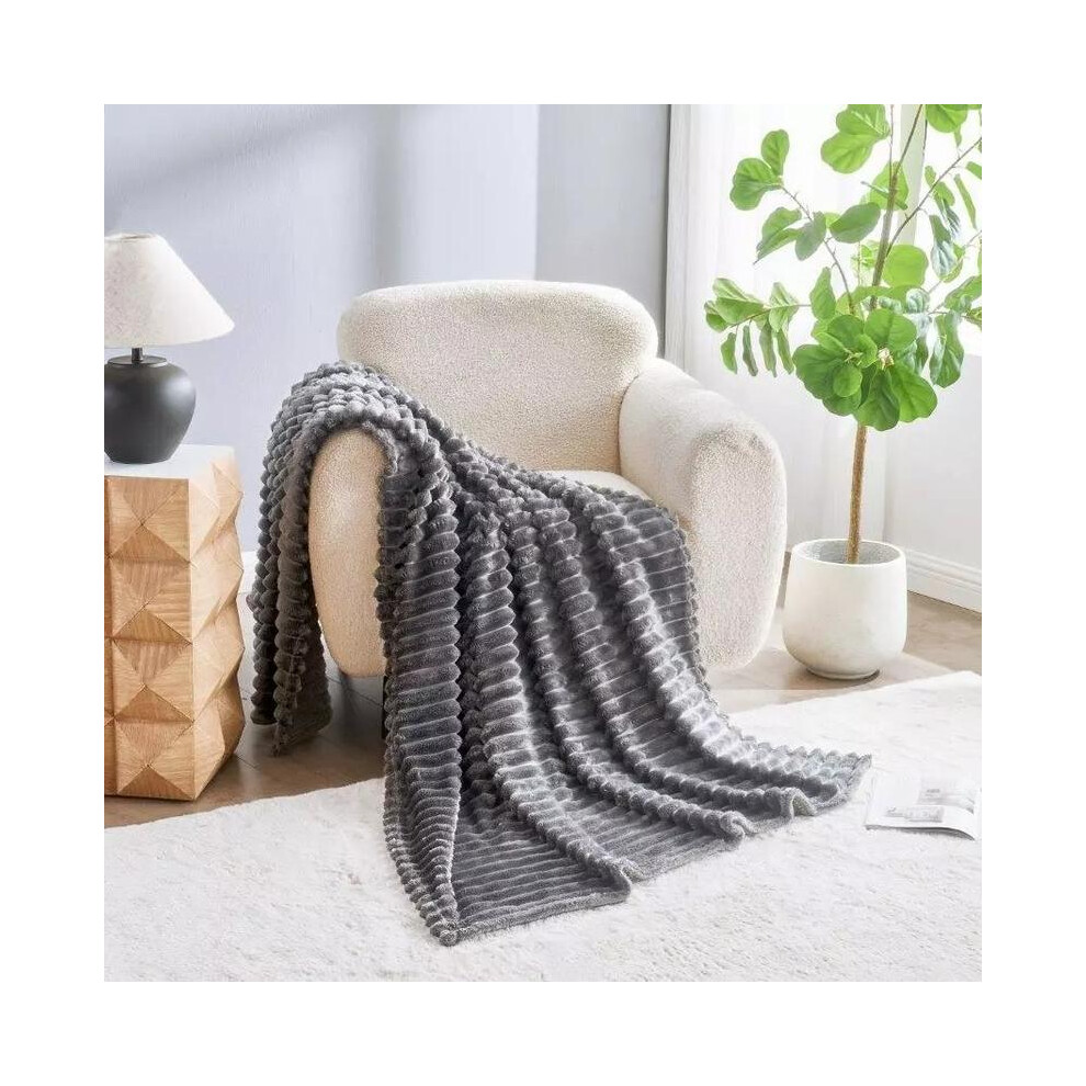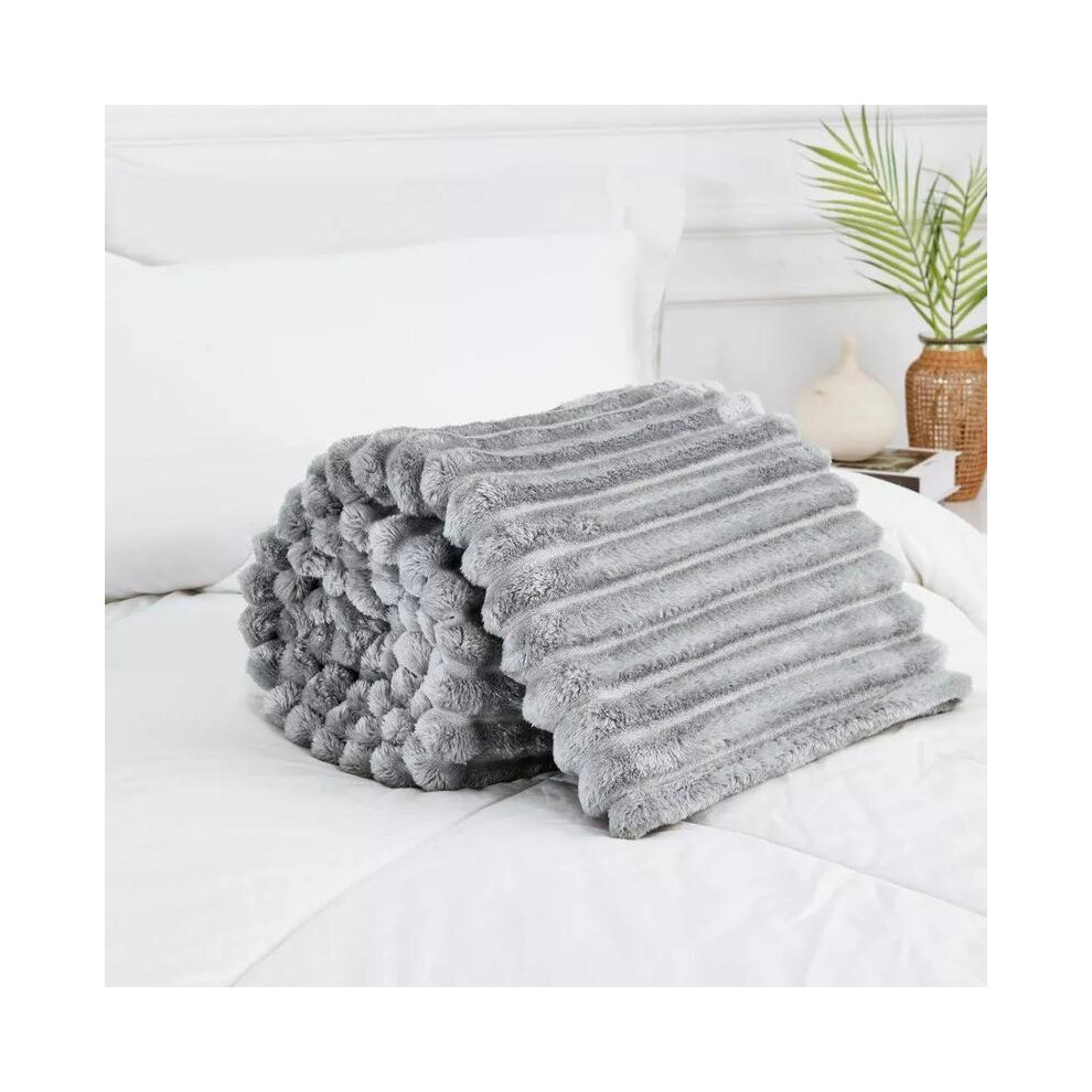 (Grey, Double) Chunky Cord Ribbed Throws Soft Large Fluffy Cosy Sofa Bed Settee Blankets
