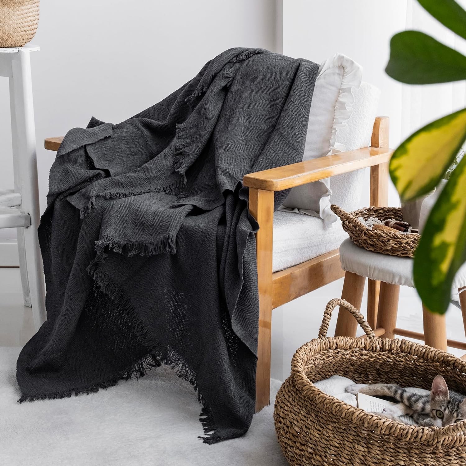 Throw Blanket for Sofa Bed and Couch Soft Cotton Reversible Farmhouse Throws for Settee Arm Chair Cover Decor - Light Grey 127 x 152 cm