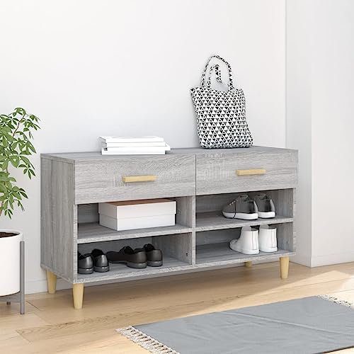 NiuBIKeLasI Grey Sonoma Shoe Cabinet, Engineered Wood Storage for Shoes, Large Shoe Organizer with 2 Drawers, 102x35x55 cm, Mueble para Zapatos
