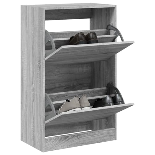 NiuBIKeLasI Grey Sonoma Shoe Cabinet, 60x34x96.5 cm Engineered Wood, Space-Saving Entryway Shoe Storage, Two Flip Drawers for Organized Large Shoes