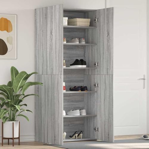 NiuBIKeLasI Grey Engineered Wood Shoe Cabinet, 80x35.5x180 cm, Modern Storage for Shoes, Large Shoe Organizer with Shelf, Durable Entryway Furniture
