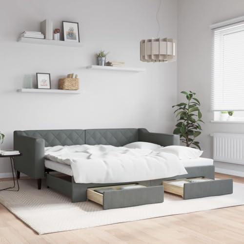 LoogCape Daybed with Trundle and Drawers, Dark Grey Fabric Upholstered Sofa Bed Frame, 90x190 cm Single Size for Living Room, Guest Room, or Bedroom