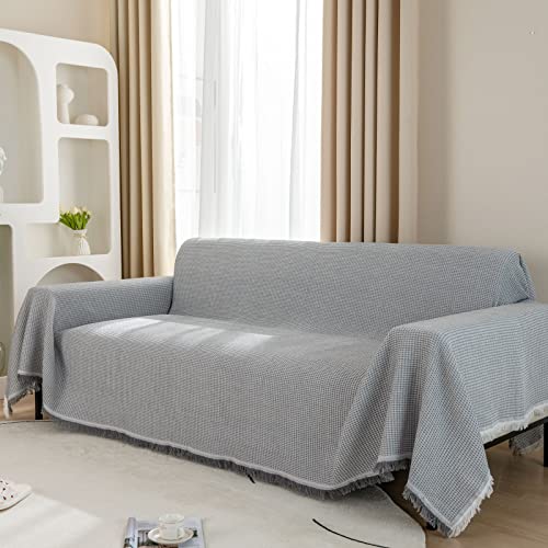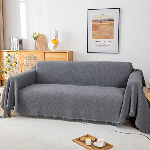 GAOWEI Sofa Throws Large 3 Seater 180x300cm Waffle Pattern Throws for Sofas Cotton Blend Sofa Cover 3 Seater with Tassels for Home Decoration and Furniture Protection - Grey