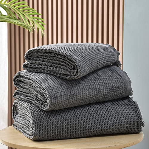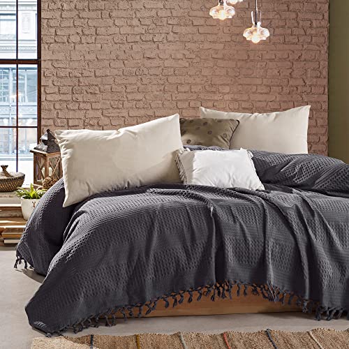 GAOWEI Sofa Throws Large 2 Seater 180x230cm Waffle Pattern Throws for Sofas Cotton Blend Sofa Cover 3 Seater with Tassels for Home Decoration and Furniture Protection - Grey