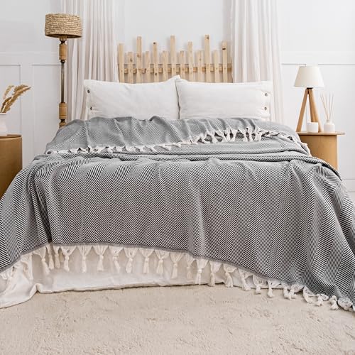 Highdi Sofa Throws Large, Extra Large Throws for Settees, Herringbone Nordic Style Versatile Woven Soft Throw Blanket with Tassels for Settees Couch Armchair Sofa Bed (180x260cm,Dark Grey)