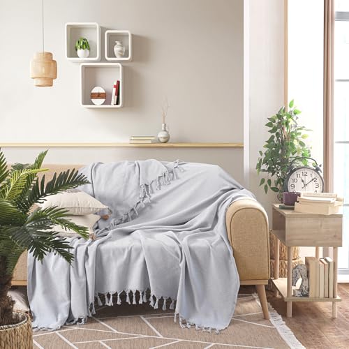 Highdi Sofa Throws Large Reversible Extra Large Throws For Settees Versatile Woven Soft Throw Blanket with Tassels for Settees Couch Sofa Bed Armchair (180x280cm,Light grey)