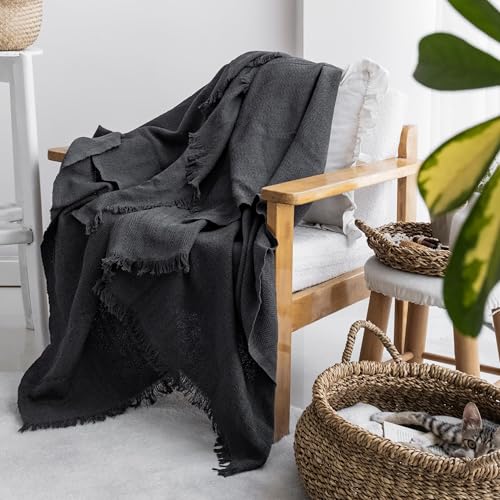 Milam London Cotton Throw Blanket | Soft Throws For Armchairs, Sofa, Settee | Single Bed Throw, Dark Grey - 170 x 200 cm