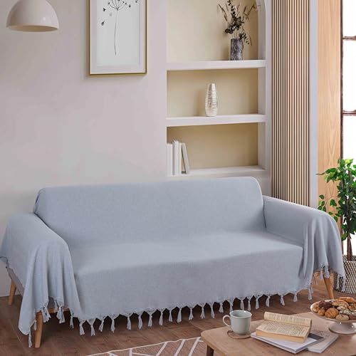 Highdi Sofa Throws Large, Nordic Style Extra Large Throws For Settees Versatile Woven Soft Throw Blanket with Tassels for Settees Couch Armchair Sofa Bed (180x260cm,Light Grey)