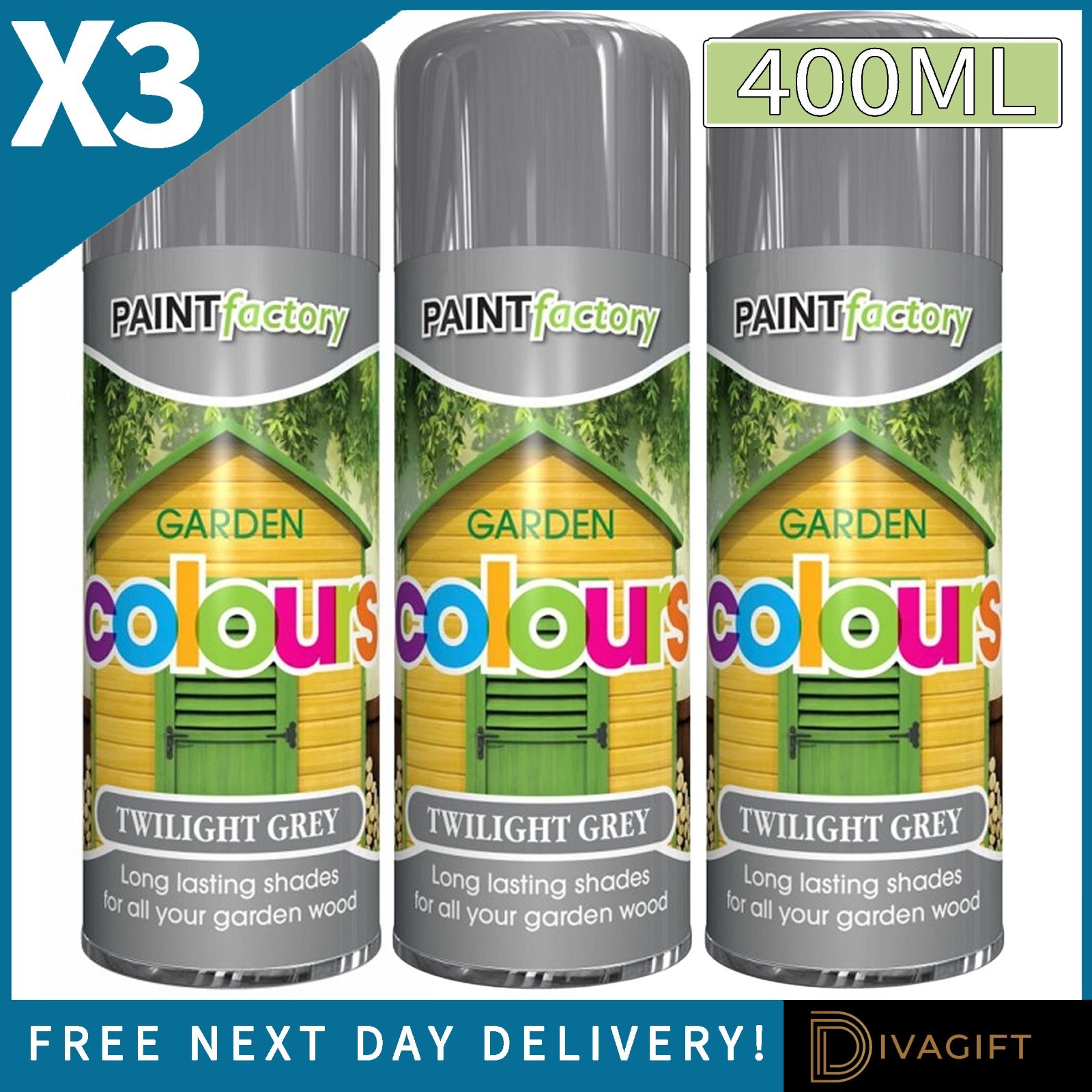 3 x TWILIGHT GREY GARDEN SPRAY PAINT 400ML FOR OUTDOOR EXTERIOR USE ON WOOD NEW