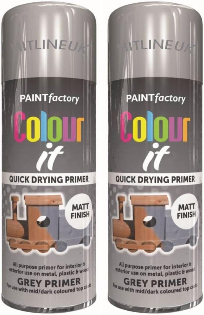 2 x 400ml Grey Primer Spray Paint – Multi-Purpose Matt Finish for Wood, Metal