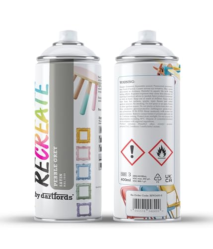 RECREATE Pebble Grey Satin Spray Paint for Wood, Metal, Plastic | Quick Drying, Smooth, Durable, Easy-to-Apply | Suitable for Indoor/Outdoor | For Furniture, Craft, Doors, Ornaments, Pots, Frames