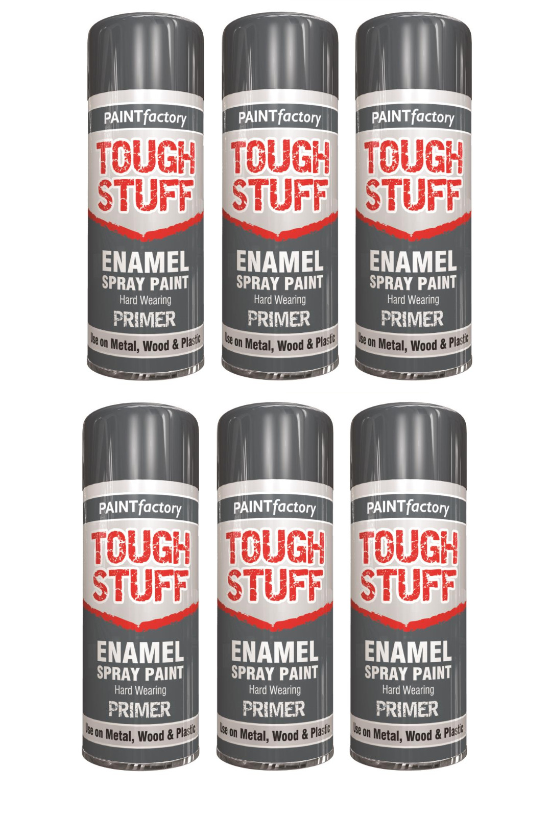 Paint Factory Tough Stuff Enamel Grey Primer Spray Paint for Wood Metal 400ml X6