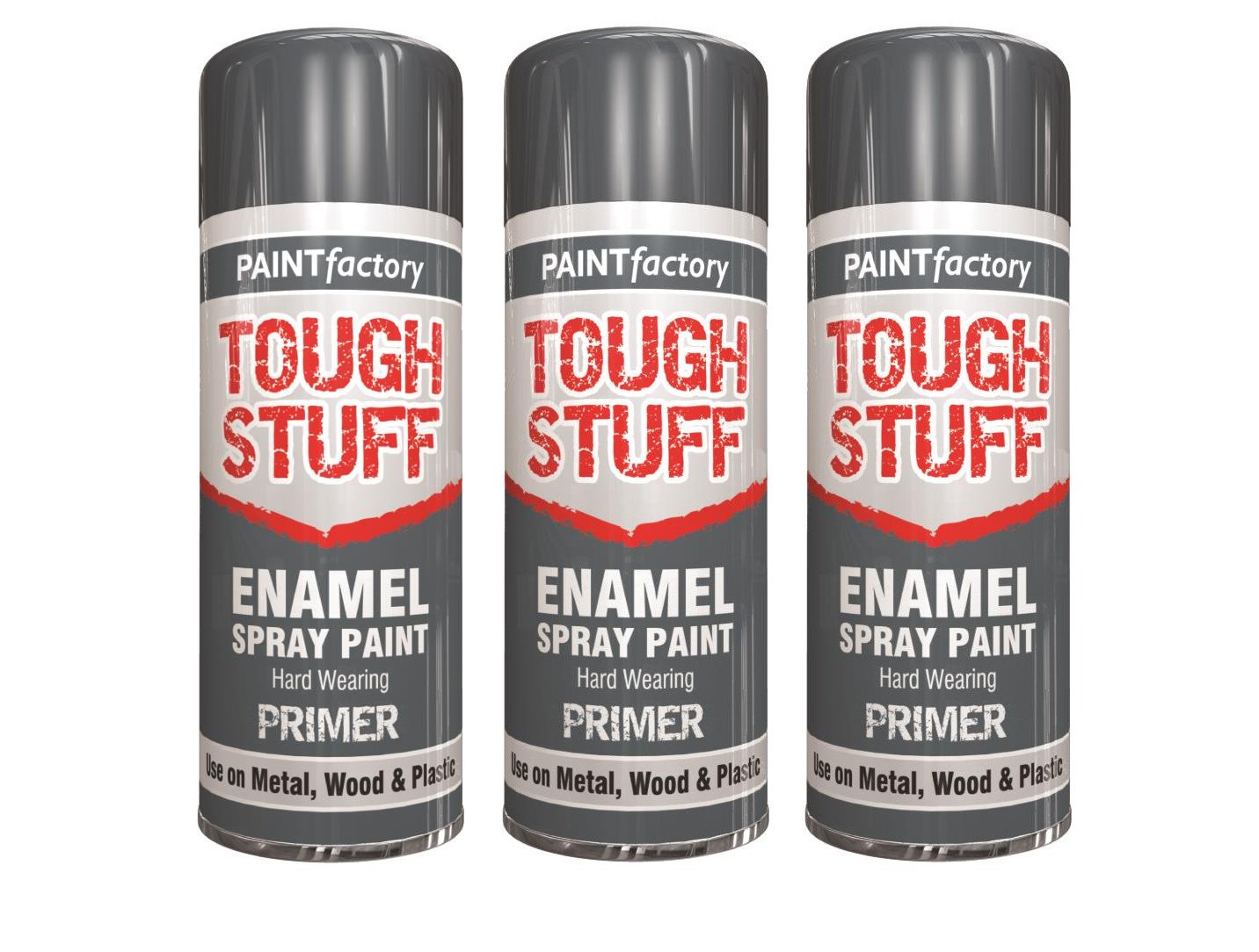 Paint Factory Tough Stuff Enamel Grey Primer Spray Paint for Wood Metal 400ml X3