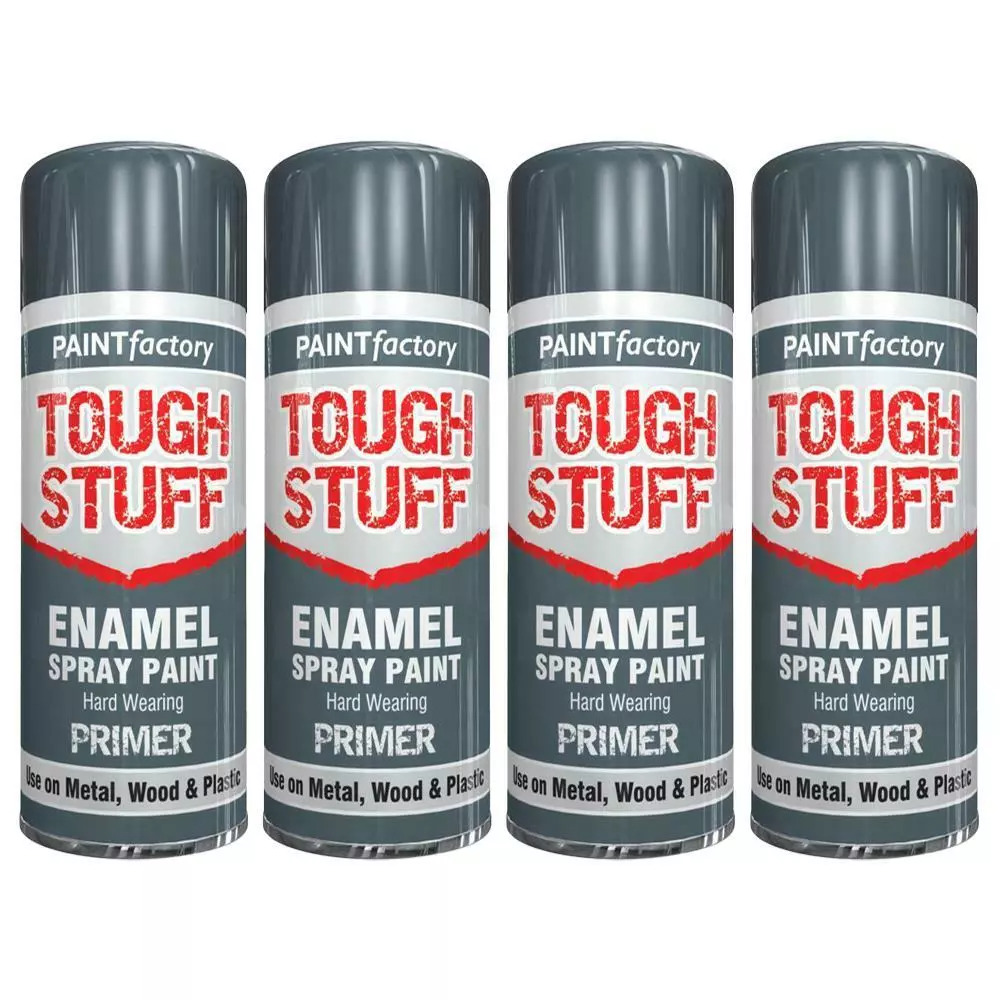 Paint Factory Tough Stuff Enamel Grey Primer Spray Paint for Wood Metal 400ml X4