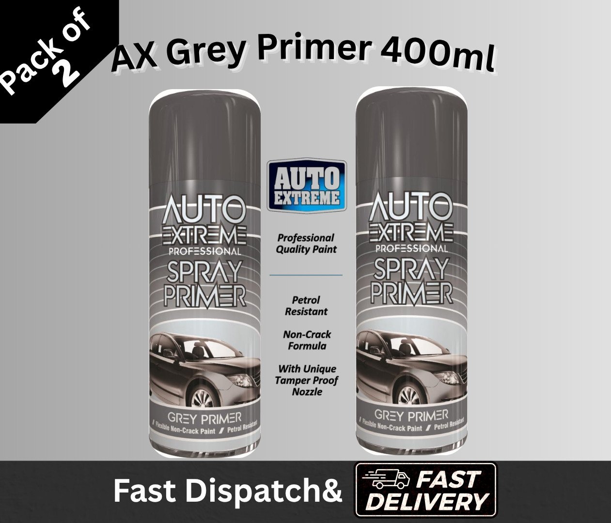 AX Grey Primer Spray Paint 400ml Fast Dry Car Metal Plastic – Pack of 2