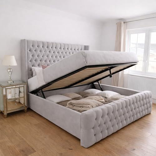 vidaXL Ottoman sängram med madrasser ljusgrå 180x200 cm sammet