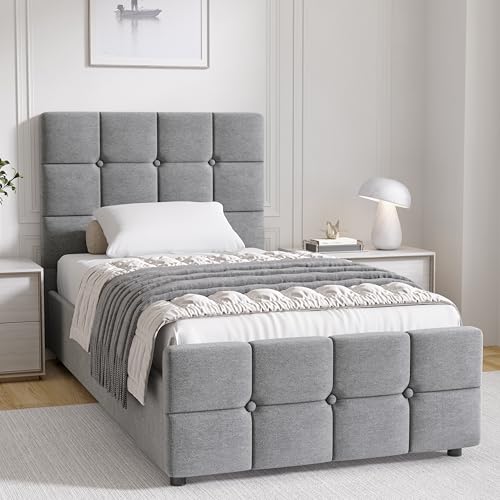 Modernique Grey Fabric Ottoman Storage Single 3ft Bed with Underneath Storage, Wooden Sprung Slatted Base (Single)