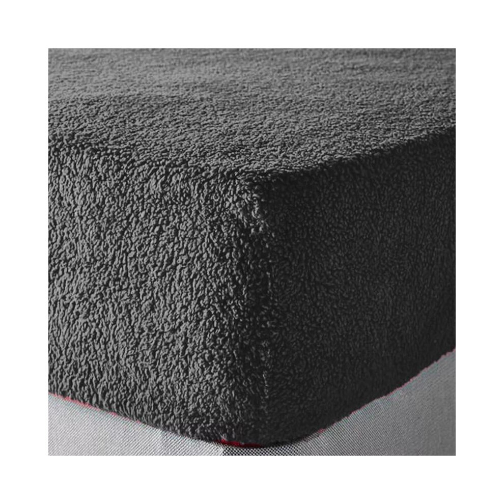 Brentfords Teddy Fleece Fitted Sheet, Soft Warm Fitted Bed Sheets Double Thermal Luxury Winter Teddy Bear Bedding Easy to Use Fit, Charcoal Grey