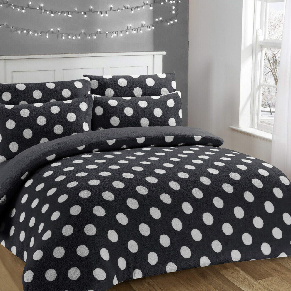 EGYPTO Teddy Bear Fleece Duvet Quilt Cover with Pillow Case - Polka Dot, Soft Bedding Set for Home, Bedroom Decor (Grey, Size: Single)