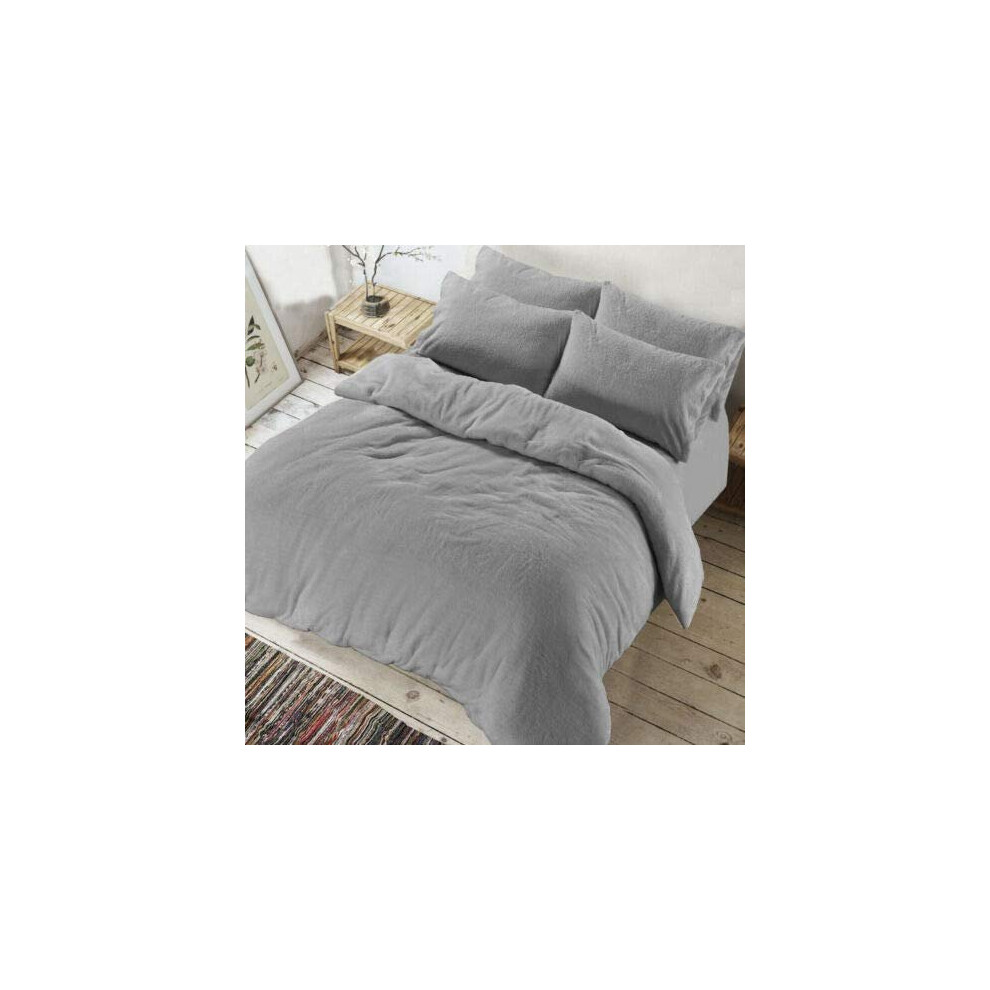 AR Textile Luxury Soft Teddy Bear Fleece Duvet cover with Pillowcases, Thermal Warm Fleece Bedding Set in single double king superking (Grey, Single)