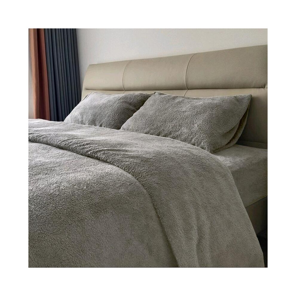 (Grey, Double) Ultra-Soft Teddy Bear Fleece Duvet Cover Set with Pillowcases - Cozy Bedding in All Sizes sets