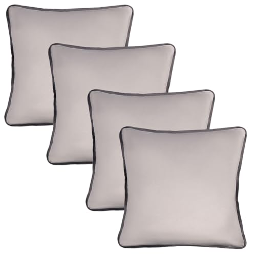OHS 4 Pack Cushion Covers Matte Velvet Piped Edge, Ultra Soft Velvet Decorative Throw Pillowcases with Invisible Zipper For Sofa Bed Livingroom, Grey-45x45cm