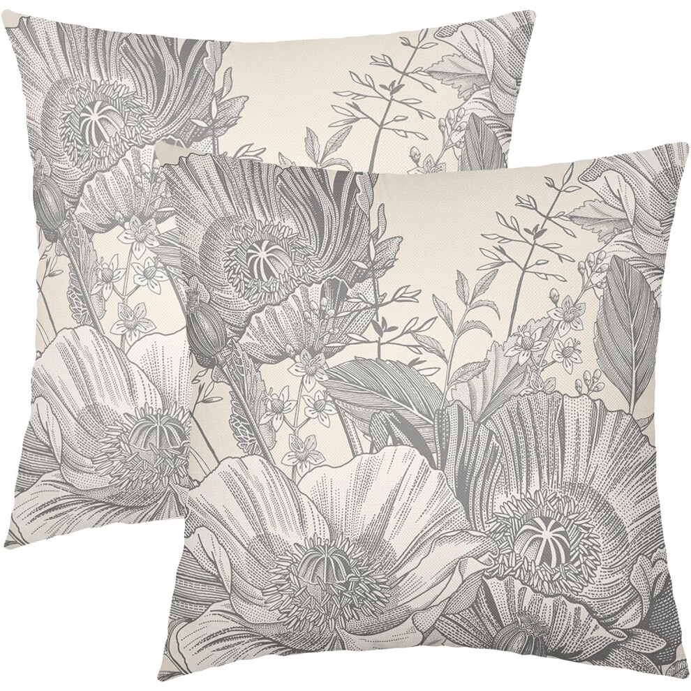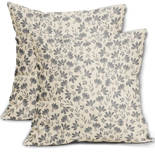 Vintage Floral Pillow Covers 16x16", Set of 2, Gray Rustic Throw Pillows for Sofa, Living Room, Porch & Outdoor Decor