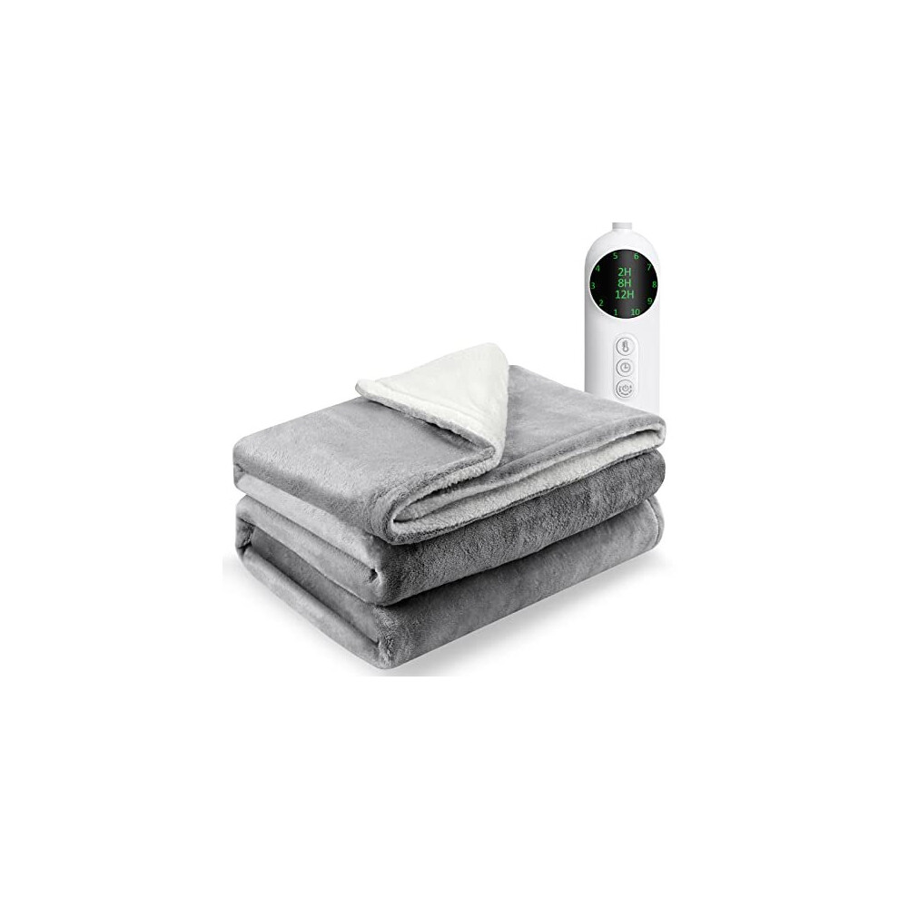 Heated Throw Electric Blanket, 160 X 130cm Flannel Heated Blanket, 10 Heat and 3 Timer Level, Grey Electric Throw for Sofa and Bed, Fast Heating