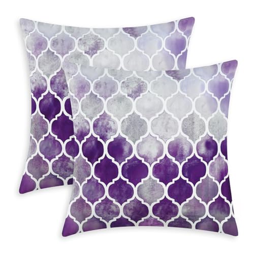 CaliTime Pack of 2 Cozy Throw Pillow Cases Covers for Couch Bed Sofa Manual Hand Painted Colorful Geometric Trellis Chain Print 45cm x 45cm Main Grey Purple Eggplant